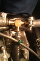 During the week I went to a hardware store and bought a replacement T piece. Got a brass one, that should not rust and be sturdy. After lots of fighting it (it was a snug fit on the pipes), I got the cooling system re-established.