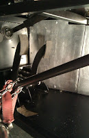 I needed to confirm that the car would run, to know if I could move it Monday night. First task was to really get it running. Placed the full battery and connected it. Bolted down the driver's seat (which was a pain, now that I have the external panels getting in the way). Sat down and cranked the engine. First attempt, failed. Rested a bit, second attempt. Hand on the exhaust, I could feel some blobs of air coming out. It was trying... Rested some more, third attempt and it started running!