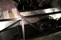On Monday went to the car after dinner. Wired the battery in and sat on the driver's seat. On Sunday I had noticed that, now that the tunnel has the aluminium panels in, my right foot would hit the brake when pressing the throttle. I was wearing my large basket boots so this time I took my Brazilian "Havaianas" (olá, Glauco!). Even with them, the foot hit both peddles. So, the front of the side panel was removed (fortunately, at the time I had to cut it to get it in without taking out the peddle box, and fortunately it was rivnuted into place).