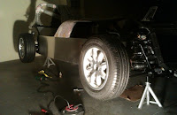 Finally had a bit to work on the car, now that the new baby room is almost ready. First task was to fit the rear wheels again, so that I could put the car on the floor. Took longer than expected, but it was good to see it on 4 wheels again.